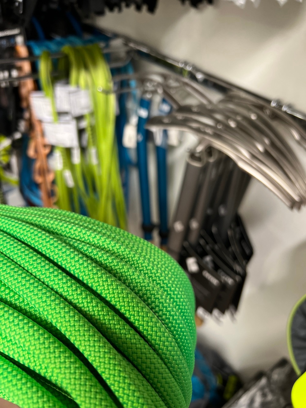 Auch zum Klettern ist einiges hier: Karabiner, Seile, Schlaufen, Sicherungsgeräte